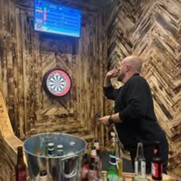 Our state of the art indoor studio with two screens and full darts set up is available for hire on your own or up to 6 mates per screen! Tee of on the best courses in the world or some in house fun and competition!